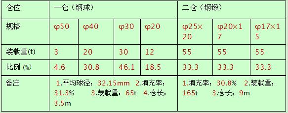 (2)參考同類企業(yè)生產數據:一倉鋼球裝載量60噸、二倉鋼鍛裝載量170噸。