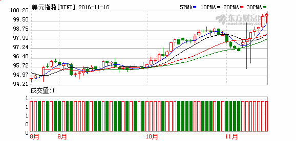 美元周二小幅上漲,實現(xiàn)七連漲。美元早間曾跌至99.50附近,不過此后,良好的美國經(jīng)濟數(shù)據(jù)再度支撐美聯(lián)儲年底升息預(yù)期,支撐美元重新站上100關(guān)口。