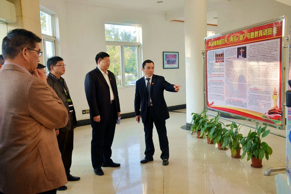 下午16點30分,汪書記一行首先來到公司中控室,公司總經(jīng)理吳鐵軍向汪書記簡要介紹了熟料制造工藝流程及環(huán)保監(jiān)控相關(guān)措施。接著,汪書記一行參觀了公司黨建宣傳展板,對公司黨委加強基層黨建建設(shè)、認真組織開展“兩學(xué)一做”教育提出了表揚。