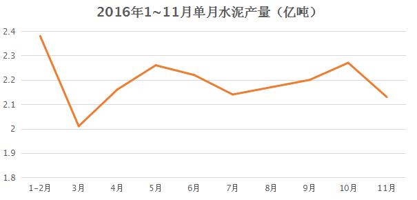 圖2 2016年1-11月單月水泥產(chǎn)量圖
