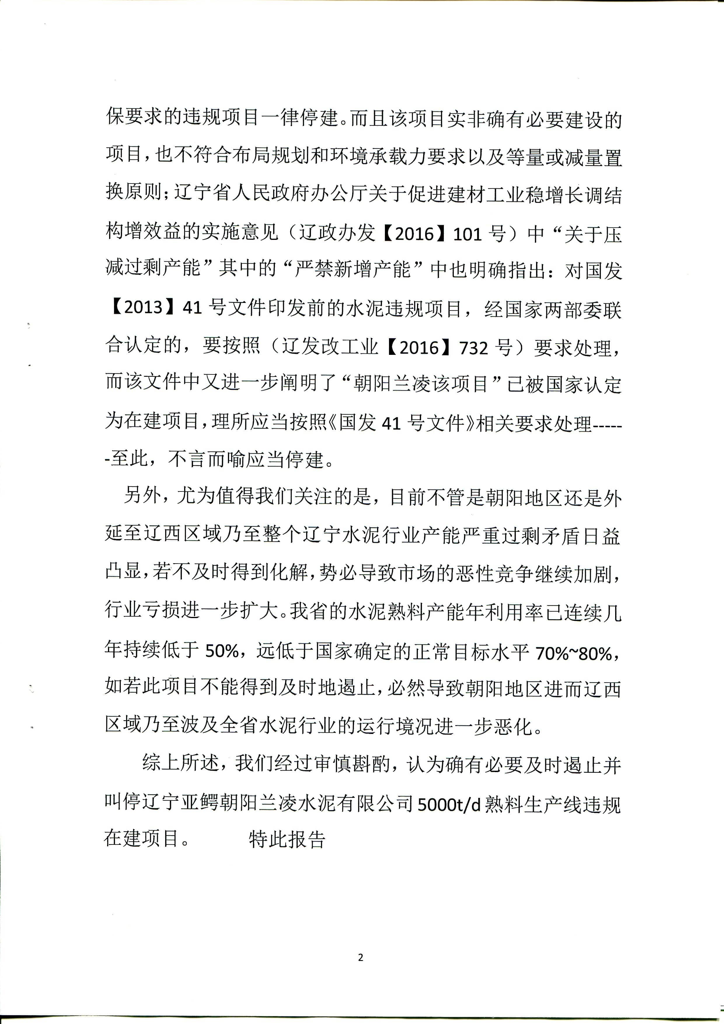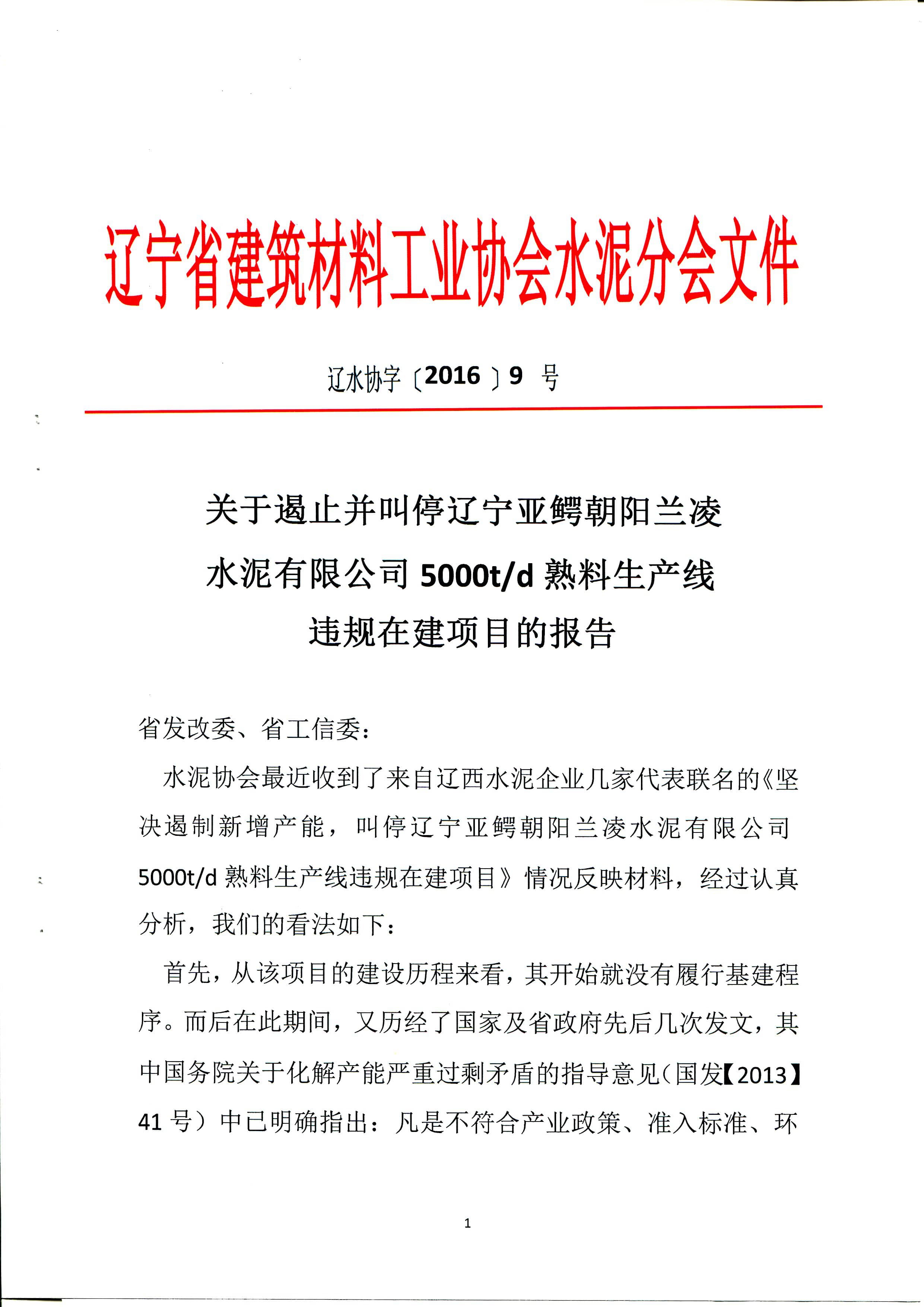 山水水泥、北方水泥、三鴿水泥、遼寧建材協(xié)會聯(lián)名舉報蘭凌水泥違規(guī)建線