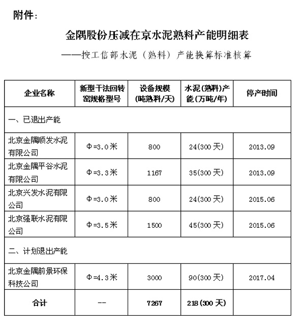 附件:金隅股份壓減在京水泥熟料產(chǎn)能明細表