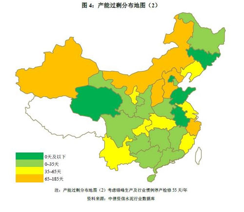 根據(jù)產(chǎn)能過剩分布地圖(2),考慮錯峰生產(chǎn)及行業(yè)慣例55天/年停產(chǎn)檢修期后,各區(qū)域產(chǎn)能過剩矛盾有所緩解,然而盡管錯峰停窯時間較長,但晉蒙和新疆地區(qū)產(chǎn)能過剩矛盾依然突出,未來簡單依靠錯峰改善供需格局的空間較為有限,短期內(nèi)恐難走出低迷。