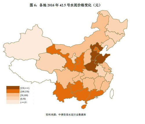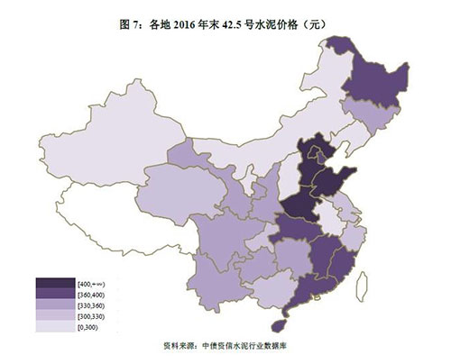 華北地區(qū)由于基數(shù)較低,得益于京津冀地區(qū)需求回暖、金隅冀東整合帶來(lái)競(jìng)爭(zhēng)秩序改善等因素,全年42.5號(hào)水泥價(jià)格漲幅117元,居全國(guó)首位,價(jià)格水平亦從2015年末全國(guó)末尾攀升至第二位;東北地區(qū)往年在黑龍江、吉林良好競(jìng)爭(zhēng)秩序支撐下價(jià)格處全國(guó)高位,但2016年在需求低迷背景下價(jià)格漲幅較小,截至2016年末價(jià)格已處倒數(shù)第二位。