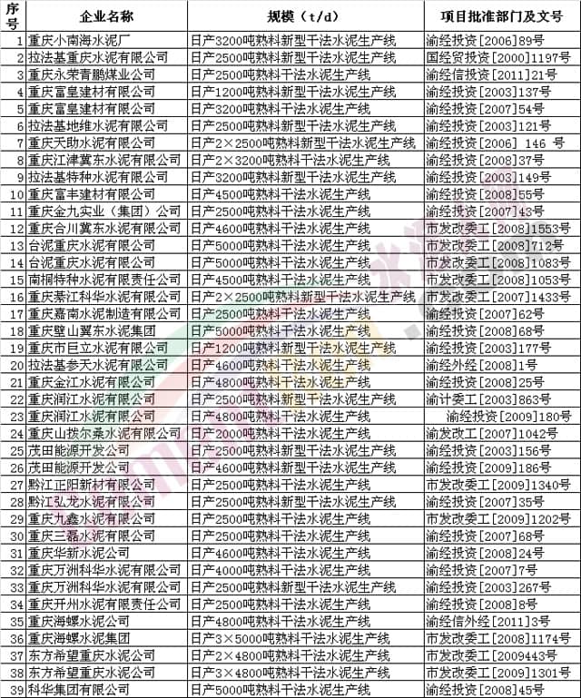 近期重慶市經(jīng)信委公布了市屬水泥行業(yè)企業(yè)建設(shè)項(xiàng)目名單,共公布33家水泥企業(yè),均不屬于落后產(chǎn)能。