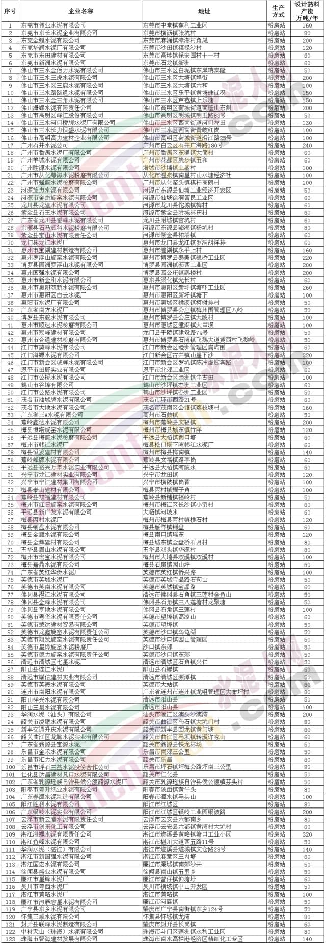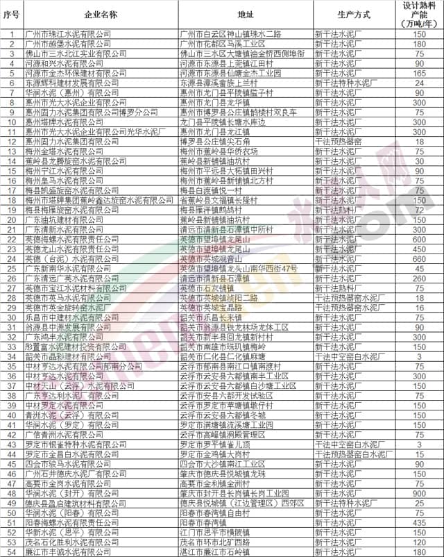 相關(guān)附件: 廣東省水泥行業(yè)產(chǎn)能現(xiàn)狀清單