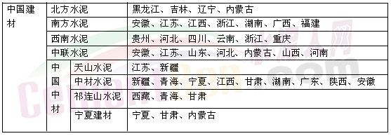 中國建材與中國中材重組后在全國各地的產(chǎn)能分布表