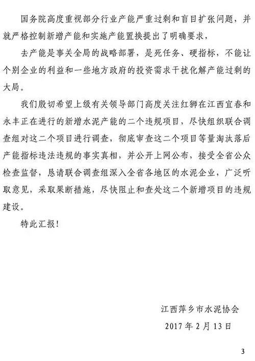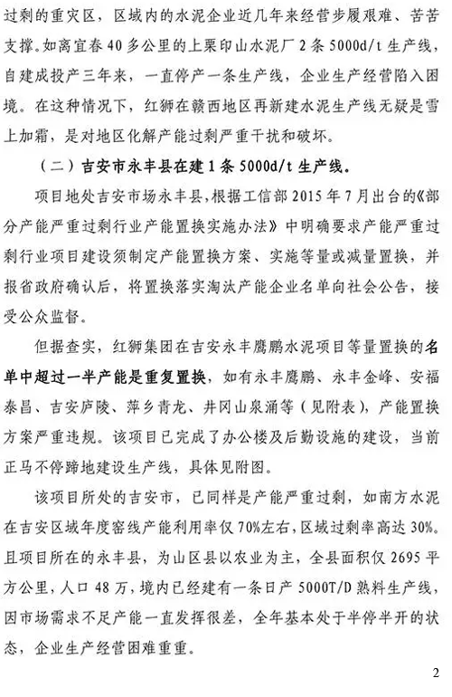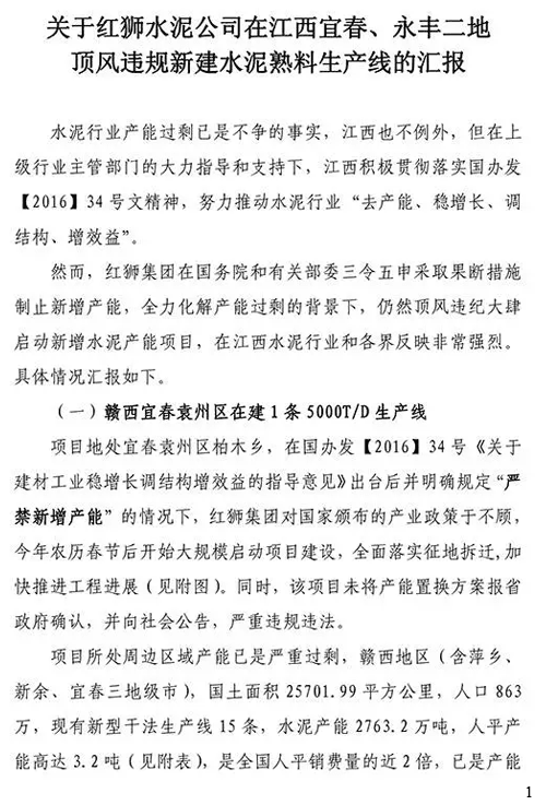 關(guān)于紅獅水泥公司在江西宜春、永豐二地涉嫌違規(guī)新建水泥熟料生產(chǎn)線的舉報(bào)材料如下:
