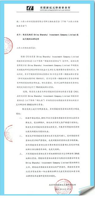 話說(shuō)程先生回到濟(jì)南后,收到《山水集團(tuán)維權(quán)委員會(huì)關(guān)于“兌現(xiàn)30%”的通知》,其中表示:“山水投資各位股東:3年維權(quán)風(fēng)風(fēng)雨雨,我們攜手同行,患難與共。捍衛(wèi)山水投資股東權(quán)益,維護(hù)山水集團(tuán)穩(wěn)定發(fā)展的維權(quán)初心從未改變。2015年8月,本著為維權(quán)職工負(fù)責(zé)的擔(dān)當(dāng)精神,山水投資顯名股東抵押借款授權(quán)趙宏波等11人收購(gòu)大家的股份,并依法簽訂《股份買賣協(xié)議》,按照協(xié)議約定付給大家70%的股權(quán)價(jià)款……鑒于目前情況,山水集團(tuán)維權(quán)委員會(huì)將繼續(xù)擔(dān)當(dāng),仍以趙宏波等人為買方給大家兌現(xiàn)30%余款,自本通知發(fā)出后10天內(nèi)完成兌現(xiàn)。”