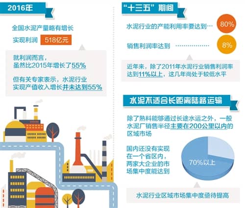 當前,我國水泥行業(yè)仍然面臨著產能過剩問題。一方面,行業(yè)要堅持通過錯峰生產、停窯限產等方式化解產能增加效益;另一方面,也要逐步探索如何以市場化手段去產能。未來,行業(yè)還需要進一步提升區(qū)域市場的集中度,并在停止新增產能、清理違規(guī)建設、推進企業(yè)兼并重組等方面出臺實施細則——