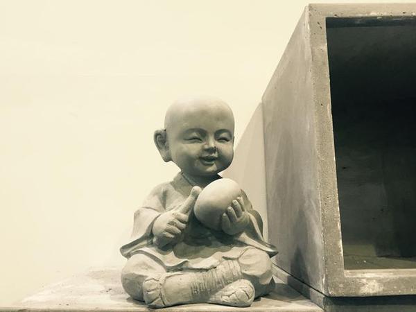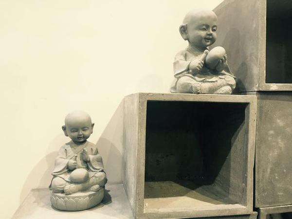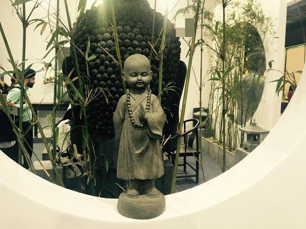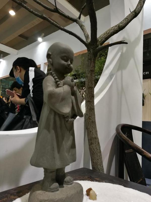 敲木魚的小僧童,造型是不是別有一番滋味。工作人員介紹,因水泥的可塑性,它可以任意制作出各色形狀。但根本上還是源于設(shè)計(jì)師的創(chuàng)作理念,這種僧侶類水泥工藝品目前在國內(nèi)還是少有。