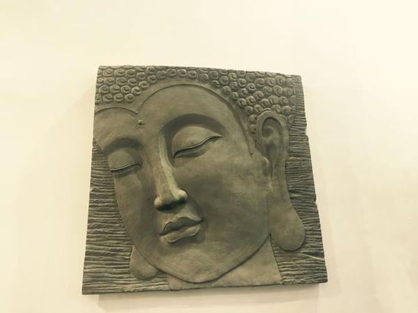 如圖是一件大型水泥制佛像雕塑,高1.50,寬1.0米。