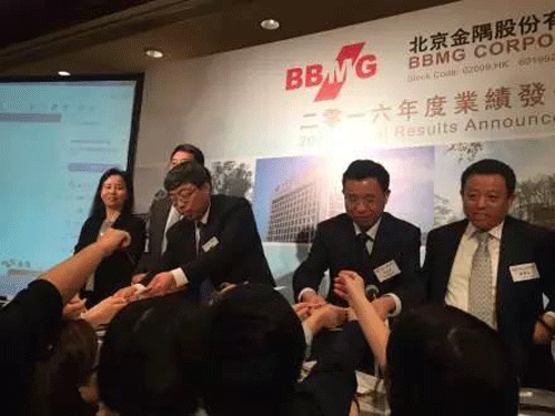 金隅管理層在記者們的簇擁下離開