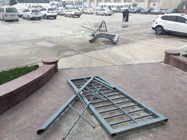 山水集團(tuán)辦公樓鋼結(jié)構(gòu)大門遭破壞