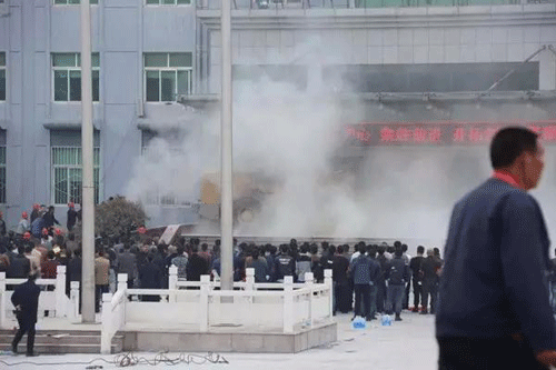 推土機撞擊辦公樓現(xiàn)場