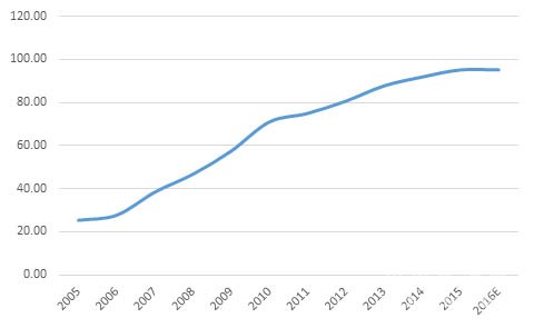 根據(jù)國家統(tǒng)計(jì)局?jǐn)?shù)據(jù),2015年窯外分解窯熟料產(chǎn)量達(dá)12.7億噸,占熟料總產(chǎn)量的95.18%,預(yù)計(jì)2016年這一比重在95.2%左右,基本與2015年相當(dāng)。雖然窯外分解窯工藝的熟料產(chǎn)量比重逐年提高,但是截止2016年仍有4.8%的熟料由非窯外分解窯生產(chǎn)。