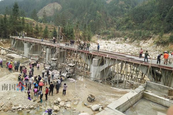 從去年11月起,廖克慶等5戶人再也沒有外出打工,每天都在工地上忙碌。村上的居民紛紛加入到橋梁的施工中。