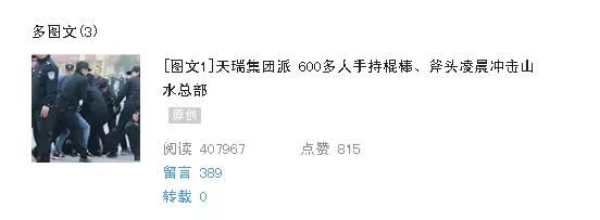 日前,水泥人網(wǎng)發(fā)布了一篇《天瑞集團派 600多人手持棍棒、斧頭凌晨沖擊山水總部》的文稿。該事件引起了社會各界的強烈關注,截止目前,閱讀量已經(jīng)超過40萬。以下為后臺截圖: