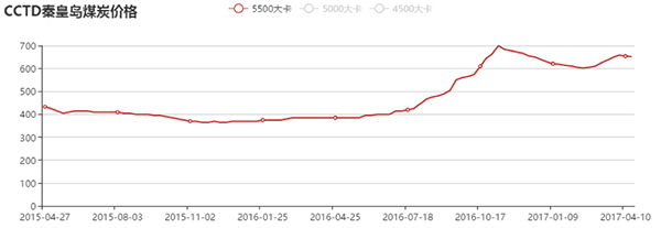 秦皇島港5500大卡動(dòng)力煤價(jià)格走勢(shì)