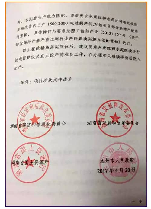 圖:關于永州紅獅水泥項目處理意見
