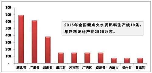 圖:2016年部分省份水泥熟料產能圖