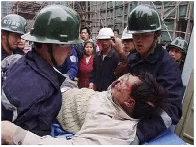 這是一張國內因工地防護不當,水泥工從十樓墜落的照片,所幸只是受傷,性命無憂。