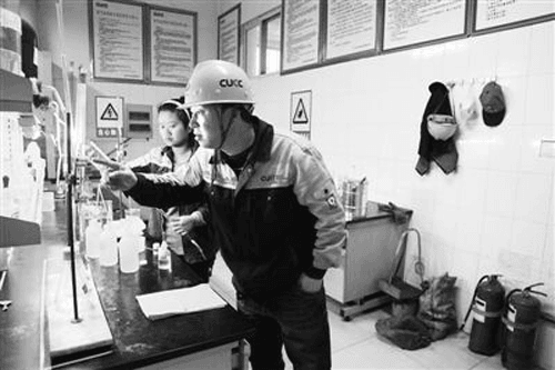 吳紅印(右一)在公司實驗室工作