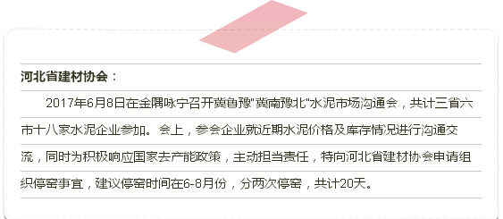 (以上排名不分先后) 這18家水泥企業(yè)的領導分別對4·1日冀魯豫市場協(xié)調會后取的成果進行了簡要匯報,同時就近期水泥價格及庫存情況進行了溝通交流。金隅詠寧董事長、贊皇金隅總經理田大春面對目前的水泥形勢進行了分析,他表示共同來維護市場氛圍是企業(yè)的責任,要互通信息,建立溝通平臺,要繼續(xù)弘揚正能量。會上,經商討后確立了冀魯豫督導小組、執(zhí)行小組并進行了職責分工,對市場銷售價格、6-8月停窯情況進行了認真研究,并達成了共識。