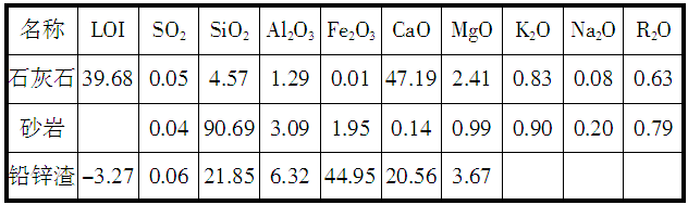 新型干法水泥熟料煅燒需要的原燃材料石灰質(zhì)(石灰石)、硅質(zhì)(砂巖、煤矸石)、鐵質(zhì)(鉛鋅渣)原料及原煤中都含有或多或少的硫成分,煅燒過(guò)程中產(chǎn)生的SO2是大氣主要污染物因素之一。所以,在熟料煅燒過(guò)程中,控制SO2排放量是一項(xiàng)重要工作。我公司原燃材料的化學(xué)分析見(jiàn)表1和表2。