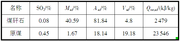 表2 煤矸石和原煤(無(wú)煙煤與煙煤比例為1∶1)的工業(yè)分析