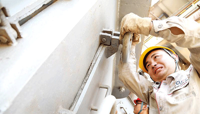昨日,在位于新安縣產業(yè)集聚區(qū)的新安中聯(lián)水泥有限公司廠區(qū)內,工人們正對完成提標改造的環(huán)保設備進行復檢。