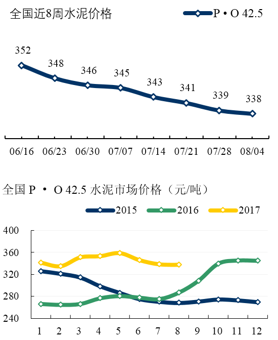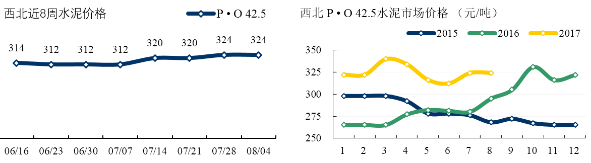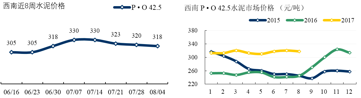 西南: 四川受環(huán)保檢查影響,成都及周邊部分房地產(chǎn)工地及攪拌站停產(chǎn)。但各企業(yè)并未強制停產(chǎn),目前水泥供應(yīng)尚較充裕。重慶雖然高溫天氣持續(xù),但主導(dǎo)企業(yè)出貨仍在正常水平 7-8 成,近期企業(yè)穩(wěn)價意圖十分明顯。本周雨水天氣開始減少,昆明及周邊廠家水泥出貨小幅回升。