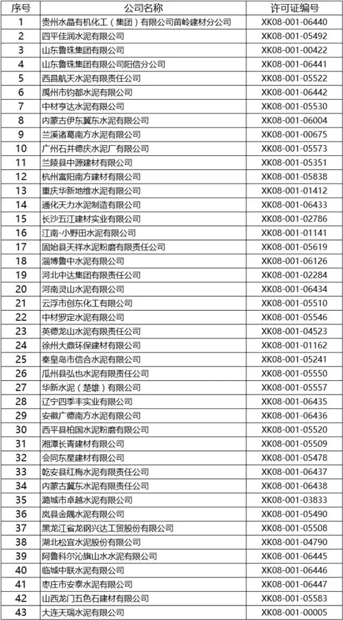 8月11日,國家質檢總局發(fā)布最新獲證企業(yè)名單,其中涉及43家水泥企業(yè),其中包括延續(xù)、延續(xù)名稱許可范圍變更、發(fā)證等內容。水泥人網(wǎng)將會在第一時間將最新獲證企業(yè)名單予以發(fā)布。