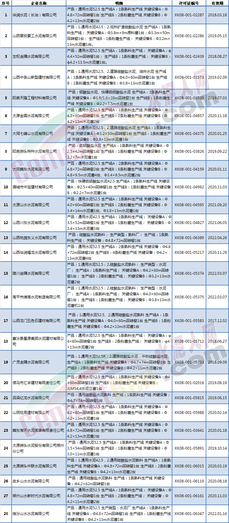 山西省熟料生產(chǎn)線名錄