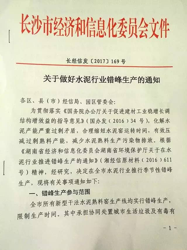據(jù)了解長(zhǎng)沙市本次發(fā)布的錯(cuò)峰生產(chǎn)通知是依據(jù)2016年12月17日通過的《湖南省水泥行業(yè)2017年錯(cuò)峰生產(chǎn)總體方案》執(zhí)行的。