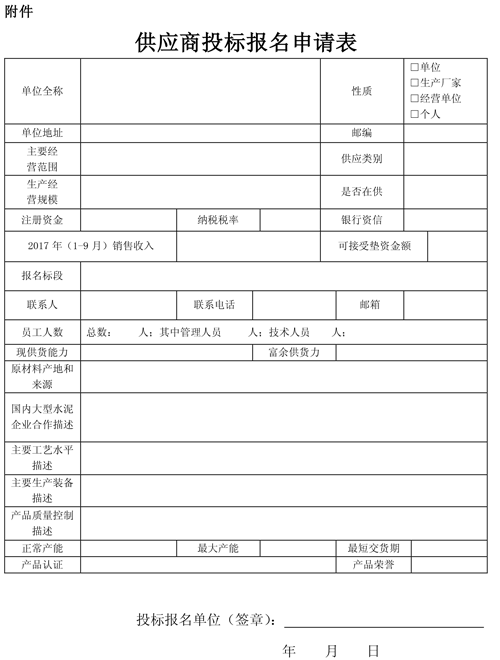 1、供應(yīng)商可以自主報名,經(jīng)貴州西南水泥招標(biāo)工作組資質(zhì)預(yù)審合格供應(yīng)商方能受邀參加招標(biāo)。