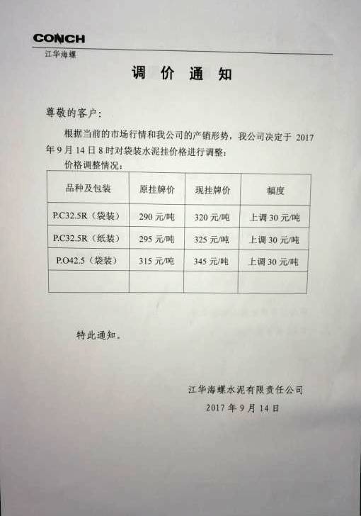 實(shí)現(xiàn)普漲,其中低標(biāo)袋、散裝水泥上漲15元/噸,高標(biāo)袋、散裝上調(diào)幅度30元/噸;