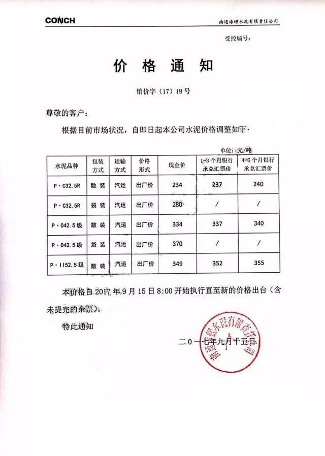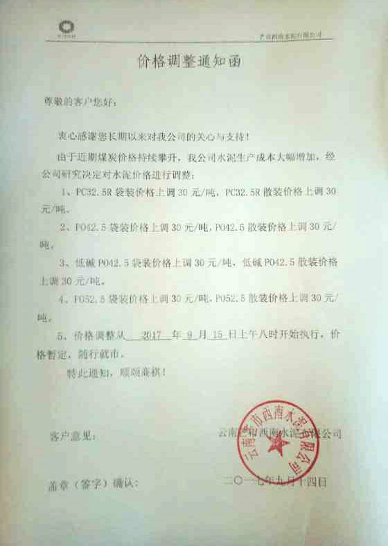 附:近兩日提價(jià)通知函