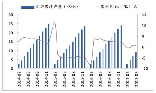 1-5 月全國水泥產(chǎn)量趨于平穩(wěn)
