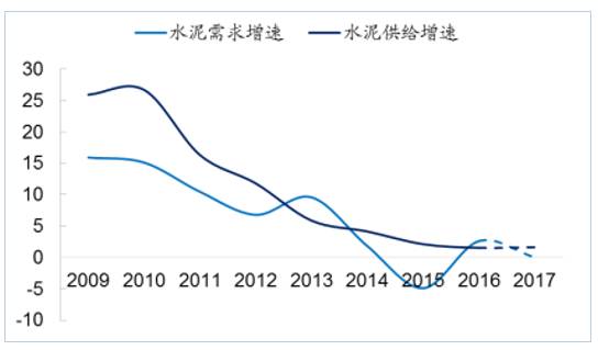 水泥行業(yè) 2009 年以來供求增速變動情況