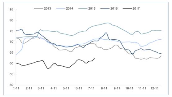 下半年需求存在下行壓力,但總體承壓有限,對三、四季度水泥價(jià)格不必過分悲觀, 目前行業(yè)庫存情況尚可,在環(huán)保嚴(yán)控和行業(yè)自律調(diào)節(jié)下, 下半年旺季水泥有望進(jìn)一步提價(jià)(目前呈現(xiàn)淡季緩慢下行狀態(tài)),玻璃價(jià)格保持高位可期, 同時(shí)玻璃供給收縮有超預(yù)期可能。