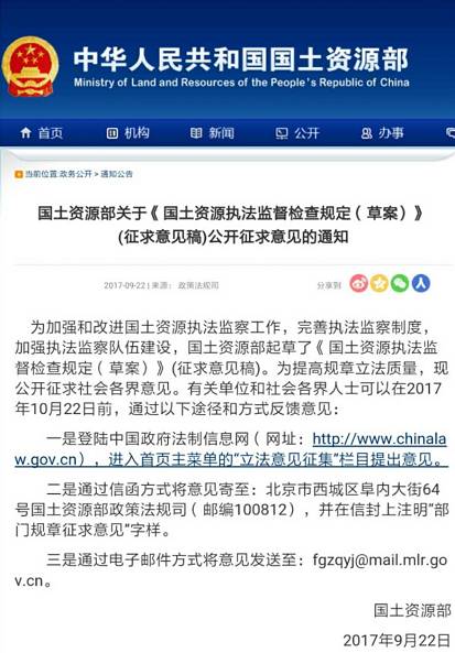 第二十八條【行政執(zhí)法公示】 國土資源主管部門應(yīng)當建立行政執(zhí)法統(tǒng)一公示平臺,依法及時主動向社會公開本級執(zhí)法查處的法律依據(jù)、管轄范圍、工作流程、救濟方式等相關(guān)規(guī)定,以及作出的生效行政處罰決定和行政處理決定、執(zhí)法檢查結(jié)果等,接受社會公眾監(jiān)督。