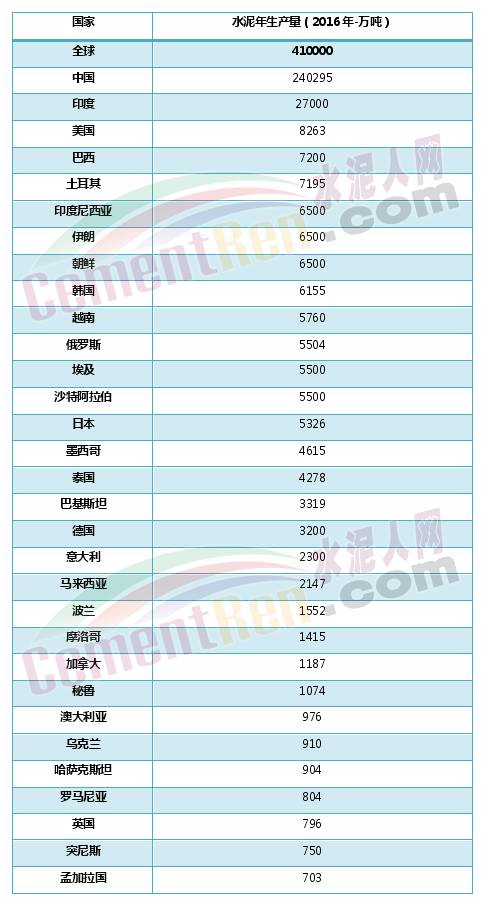 附表1:年水泥產(chǎn)量在700萬(wàn)噸以上的國(guó)家