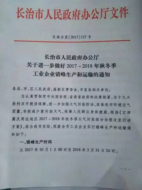 近日,山西省長(zhǎng)治市發(fā)布《關(guān)于進(jìn)一步做好2017-2018秋冬季工業(yè)企業(yè)錯(cuò)峰生產(chǎn)和運(yùn)輸?shù)耐ㄖ罚撐募鞔_規(guī)定,自2017年10月1日00時(shí)起至2018年3月31日24時(shí),所有建材行業(yè)全部停產(chǎn),包括水泥(含粉磨站)、磚瓦窯、陶瓷、石膏板、石砼、石料廠、石膏廠、礦渣微粉(高細(xì)粉)等。
