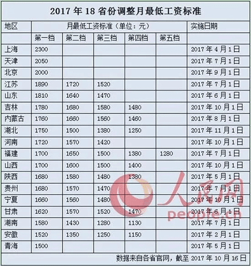 據(jù)了解,吉林、河南、山西、寧夏等多地在國慶節(jié)后開始執(zhí)行新的最低工資標(biāo)準(zhǔn)。事實(shí)上為著力保障低收入勞動(dòng)者權(quán)益,2017年以來至少已有18個(gè)省份調(diào)高了最低工資標(biāo)準(zhǔn)。