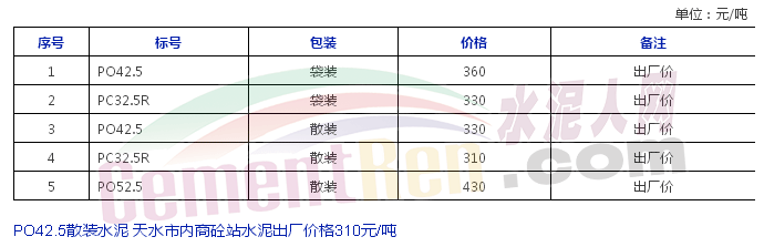 水泥人網(wǎng)29日消息,中建材下屬企業(yè)天水中材水泥有限責(zé)任公司自今日零時起,對各品種水泥出廠價格進行調(diào)整。調(diào)整后各品種水泥執(zhí)行價格如下: