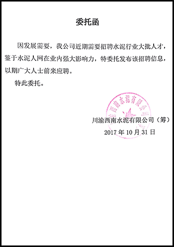 因發(fā)展需要,川渝西南水泥有限公司近期需要招聘水泥行業(yè)大批人才,鑒于水泥人網(wǎng)在業(yè)內(nèi)強(qiáng)大影響力,特委托水泥人網(wǎng)發(fā)布招聘信息,以期廣大水泥行業(yè)從業(yè)者前來去應(yīng)聘。招聘啟示如下: