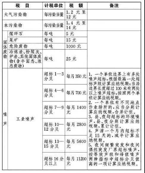 ▼環(huán)保稅稅目稅額表
