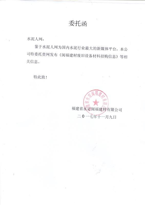 招標(biāo)單位:福建省永定閩福建材有限公司