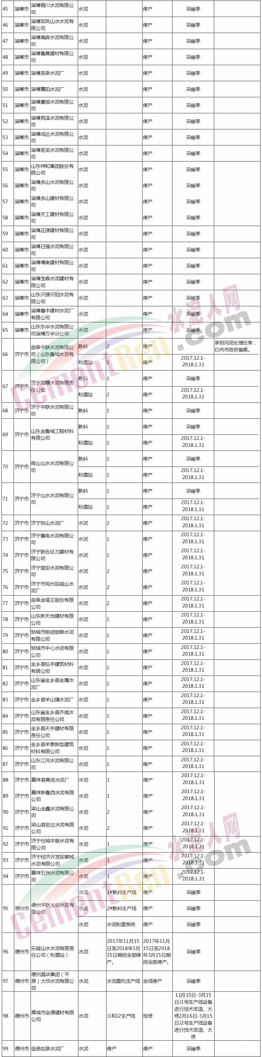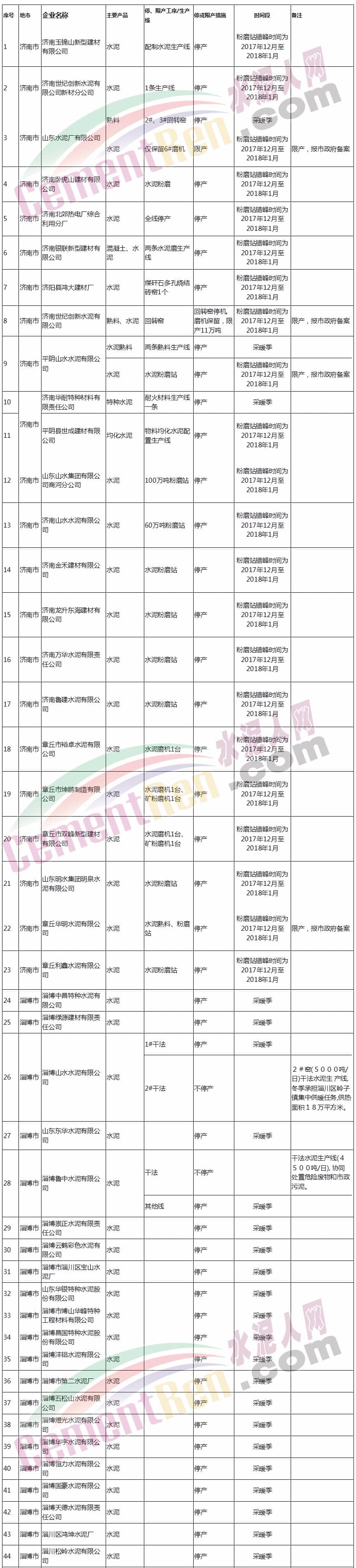 2017-2018年秋冬季水泥企業(yè)